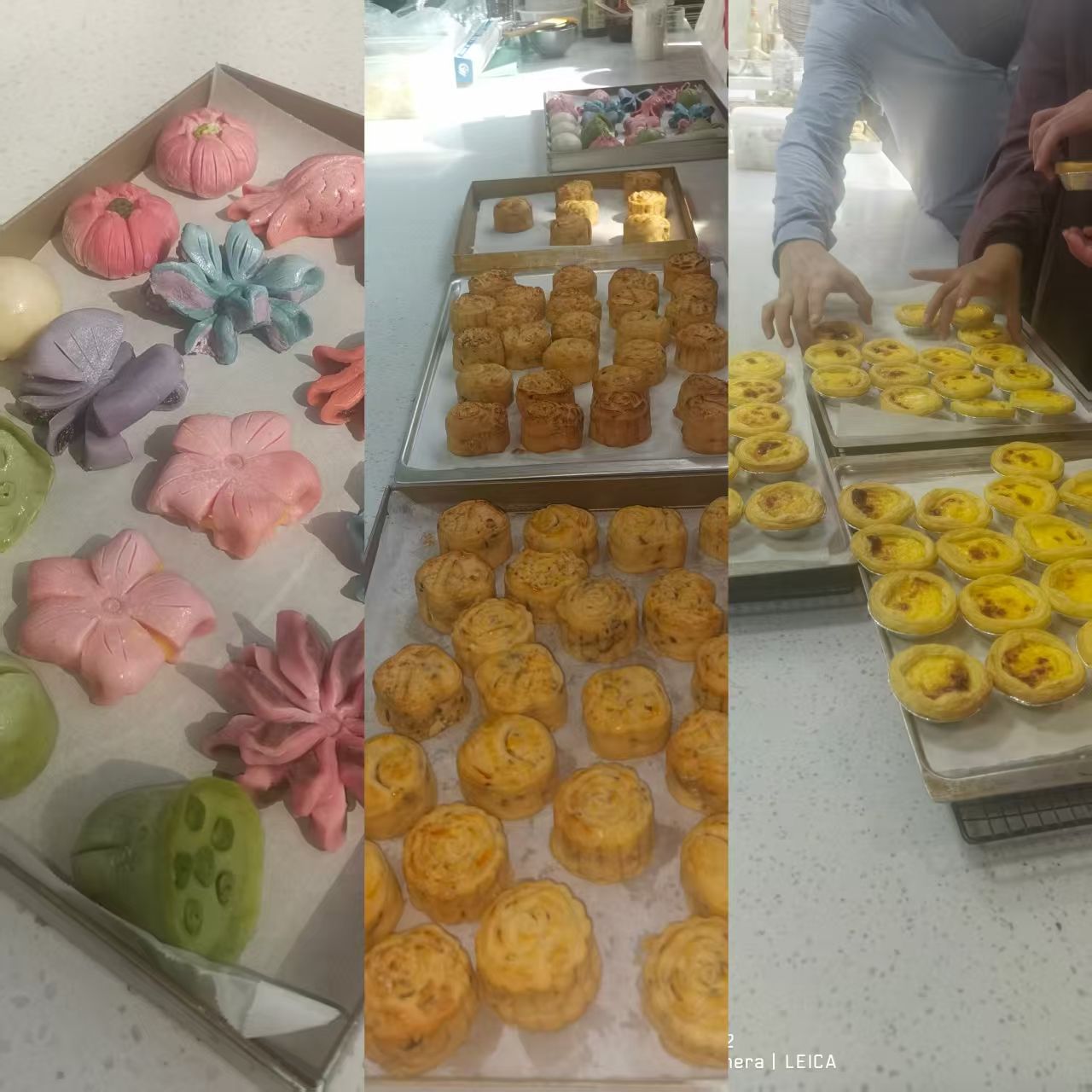 在烘焙师的巡回指导下,大家攻克了“饼皮开裂”“花纹不清晰”等小问题。经过两小时的制作与烘烤,一盘盘金黄油亮的月饼、造型可爱的蛋黄酥和蛋挞陆续出炉。教职工们捧着自己亲手制作的节日甜品,或拍照记录成果,或与同事分享品尝,甜香在口中化开,幸福感在心中升腾。参与活动的教职工笑着说道。
