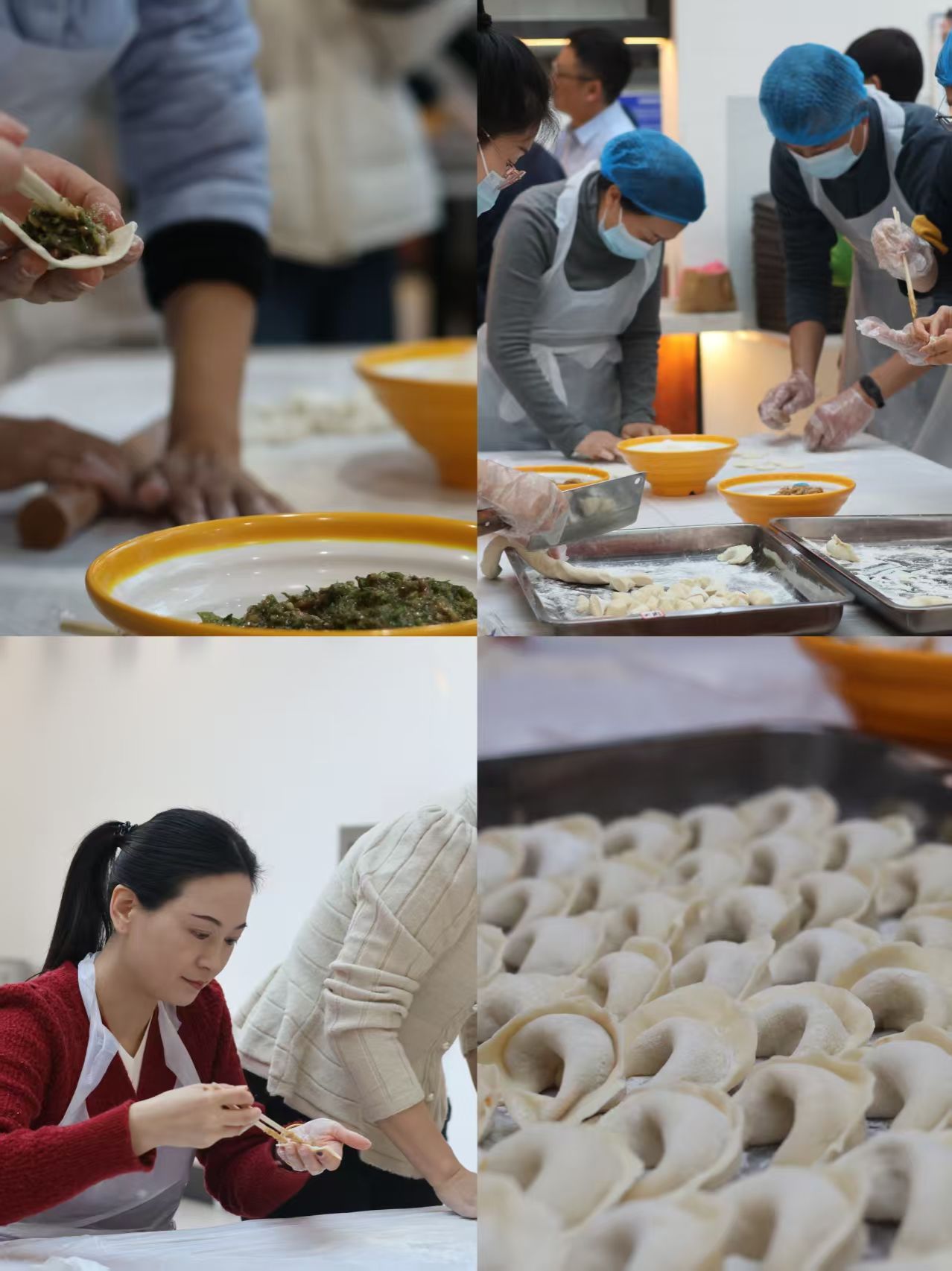 活动现场暖意融融,热闹非凡,食材和工具整齐摆放,大家分工协作,娴熟擀饺子皮、捏制规整的饺子,还尝试特色花样,相互交流技巧,一个个饱满的饺子摆满托盘,鲜香四溢,传递“家”的温暖。