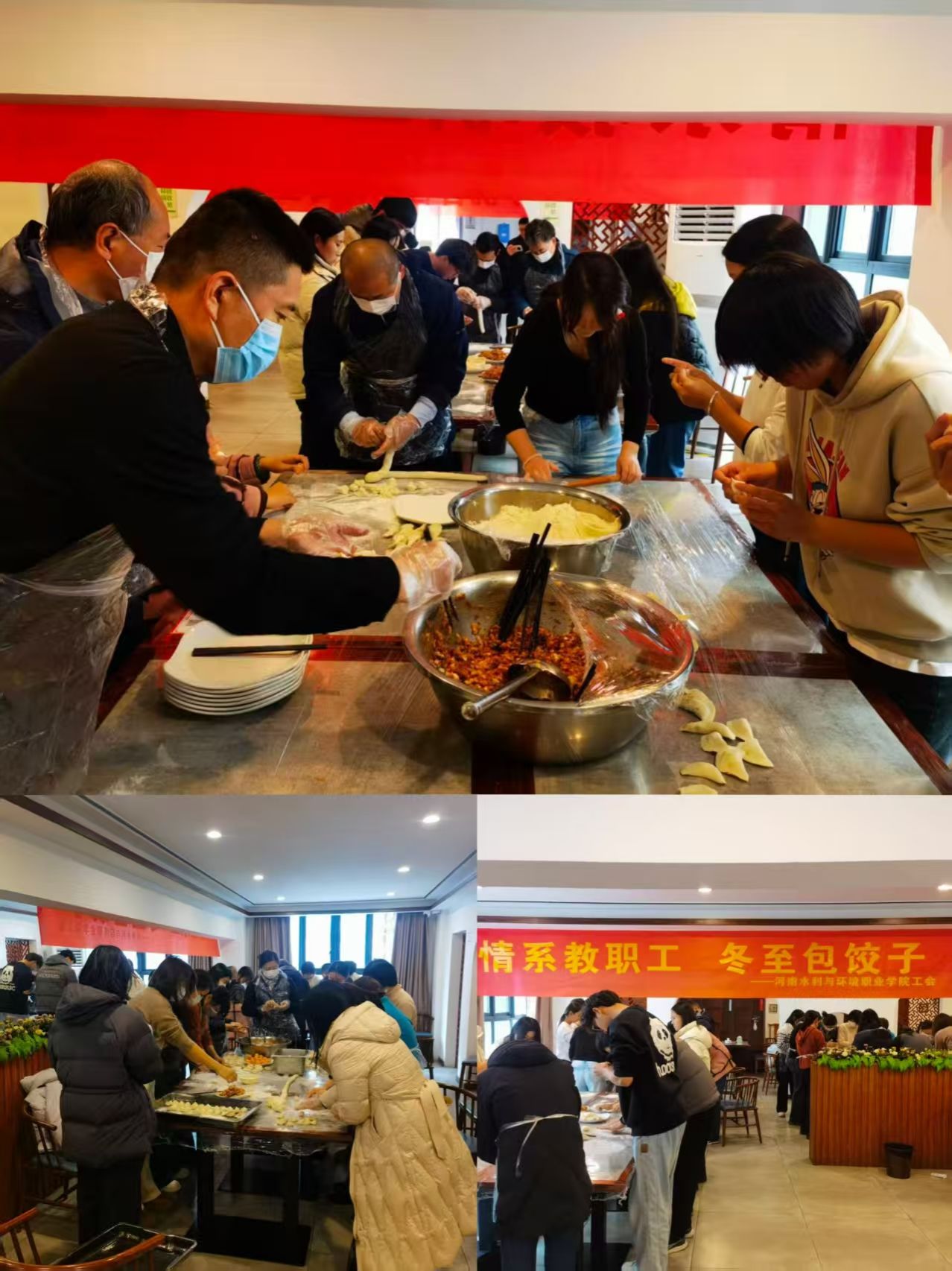 12月18日、19日,球吧平台app入口分别在花园路和航空港两校区开展“情暖冬至 温馨水环”主题活动。两校区共80余名教职工齐聚一堂,在忙碌的工作之余带来一抹温暖的烟火。